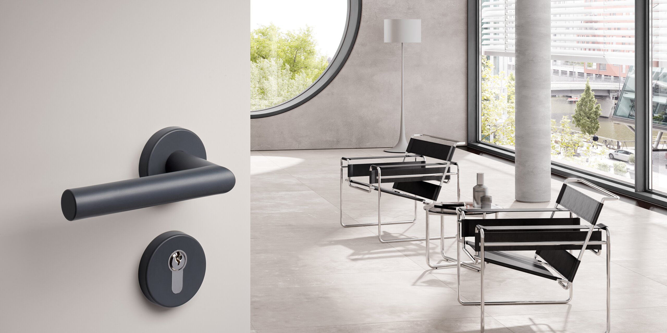 Materialoptionen eröffnen Spielraum für individuelles Design: Erhältlich sind die Türdrücker in Edelstahl und Polyamid, wahlweise in der Edition matt oder mit Pulverbeschichtung.