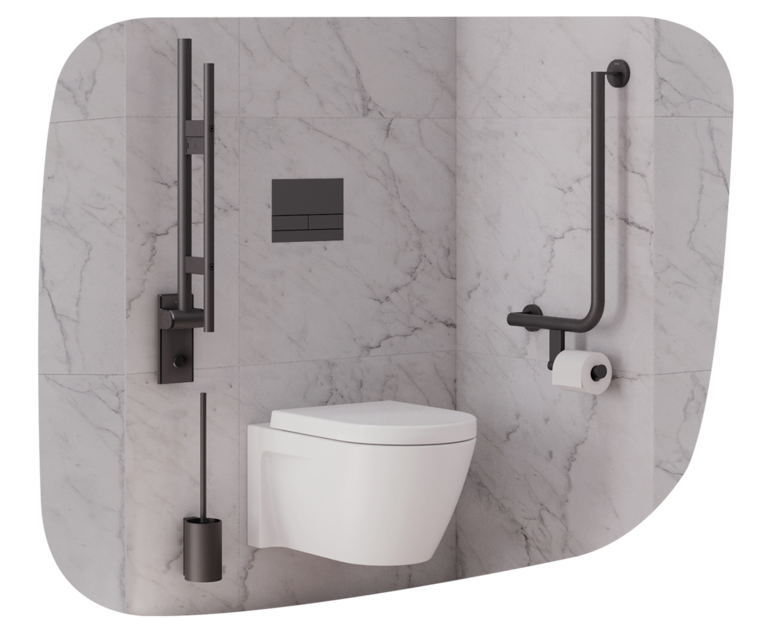 Mit System 900, unserer Linie für Bad-Accessoires und unterstützende Produkte, eröffnen sich vielfältige Gestaltungsmöglichkeiten, die dein Bad barrierefrei und zugleich stilvoll machen. Ob in Chrom, Edelstahl oder pulverbeschichtet in Weiß, Grau und Schwarz – mit diesen Optionen verleihst du deinem Traumbad einen modernen Look.
