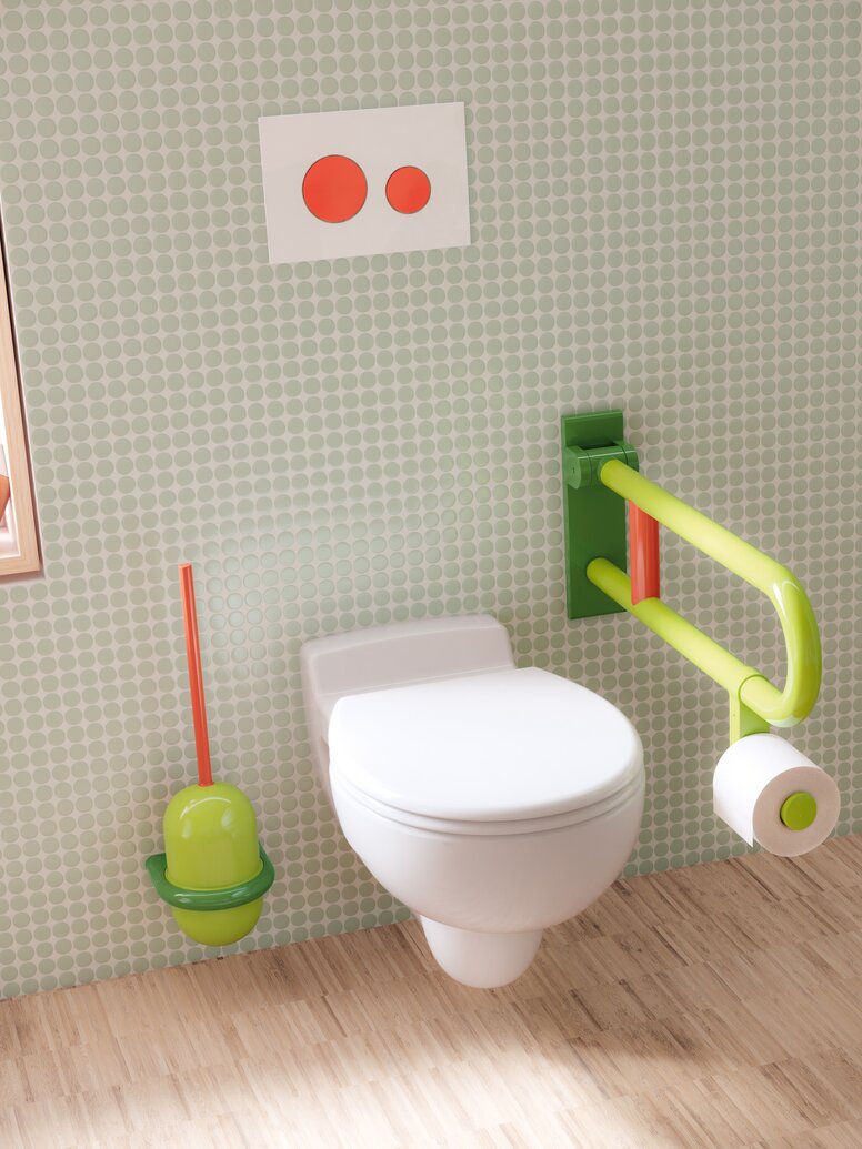 Signalfarben helfen nicht nur älteren oder erkrankten NutzerInnen. Schon im Kindesalter haben auffällige Farben eine wichtige Wirkung. Auch hier helfen Farben wie Blau, Rot und Gelb dabei, Funktionen im Sanitärbereich zu verdeutlichen und die Orientierung der Kinder zu erleichtern. Die selbstständige Nutzung von WC und Waschbecken wird dadurch erleichtert.