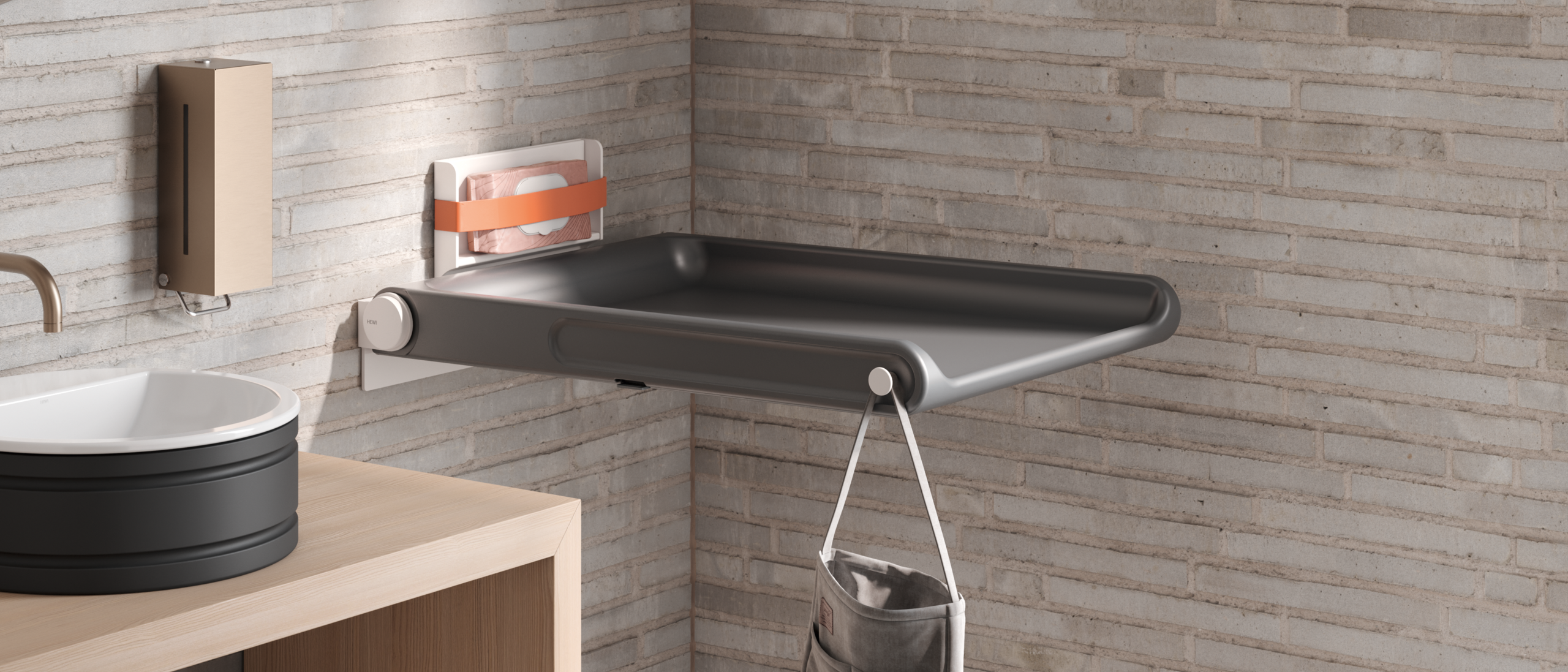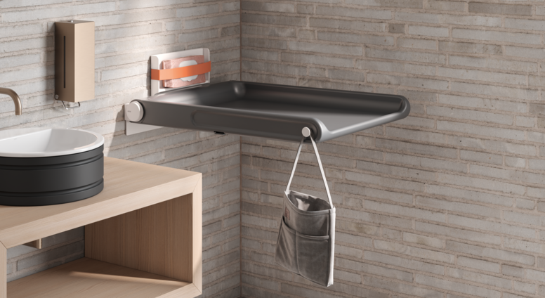 Wenn sich Alltagstauglichkeit, klare Gestaltung und hygienische Sicherheit verbinden, entstehen Produkte, die Menschen im täglichen Leben spürbar entlasten. Ein Beispiel dafür ist der neue Babywickeltisch, den HEWI gemeinsam mit Holscher Design entwickelt hat. Das wandmontierte Design mit gebremstem Absenken eignet sich besonders für öffentliche und halböffentliche Räume mit begrenztem Platzangebot. Für zusätzlichen Komfort sorgen durchdachte Details: Seitlich integrierte Haken bieten Platz zum Aufhängen von Taschen oder Jacken, während ein praktisches Klemmfach auf der Rückseite Feuchttücher und andere Utensilien jederzeit griffbereit hält. Die porenfreie, antibakterielle Oberfläche gewährleistet eine einfache Reinigung und erfüllt höchste Hygienestandards. So entsteht ein Produkt, das Alltagssituationen spürbar erleichtert – sicher, hygienisch und nutzerfreundlich gestaltet.