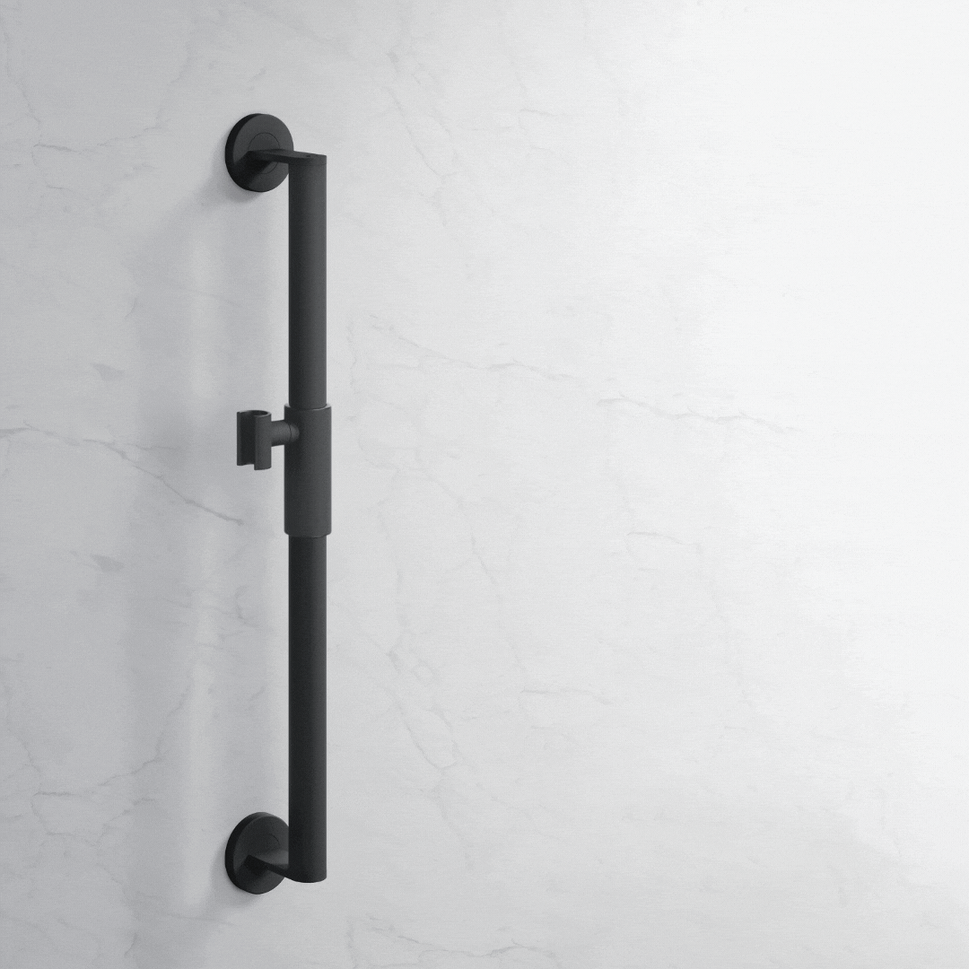 Ein Beispiel für eine smarte Innovation ist der Magnetbrausehalter von HEWI. Statt eines herkömmlichen Halters mit Drucktasten oder Knöpfen ermöglicht die Magnetfunktion ein einfaches Gleiten der Handbrause entlang der Brausestange. Die Höhe kann mühelos mit einer Hand angepasst werden, und der Konushalter ist stufenlos drehbar. Das erleichtert die Bedienung und sorgt für eine besonders komfortable Nutzung.