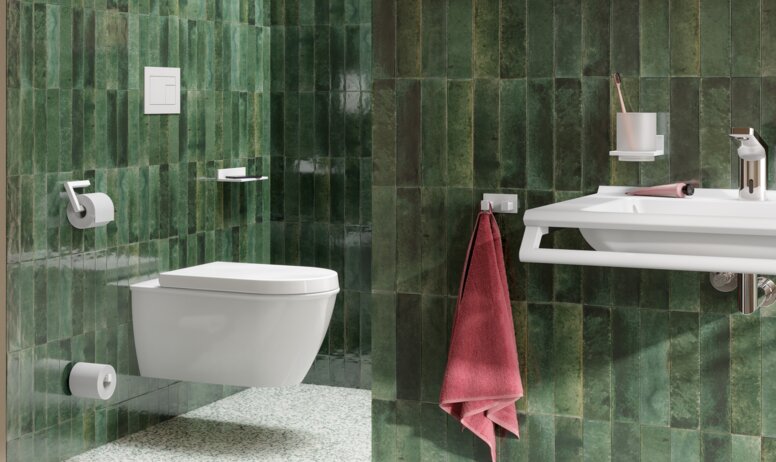 System 800 in der Trendfarbe kombiniert sanfte, organische Formen mit einem schlichten, modernen Design. Die klaren Linien und harmonischen Rundungen verleihen jedem Badezimmer eine elegante Note. Diese Accessoires bieten eine perfekte Mischung aus Ästhetik und Funktionalität und eignen sich hervorragend für eine zeitgemäße und ansprechende Badeinrichtung. Der modulare Aufbau von System 800 ermöglicht dir vielseitige Kombinationsmöglichkeiten, sodass du dein Bad ganz nach individuellen Wünschen gestalten kannst. Die Produktserie umfasst Accessoires für Waschtisch, WC und Dusche sowie barrierefreie Produkte.