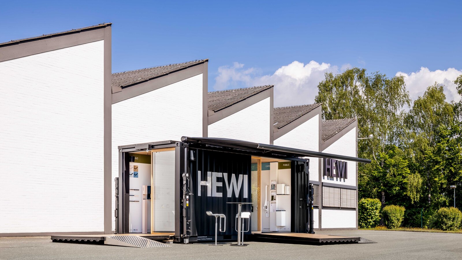 KundInnen können HEWI Produkte nun live und hautnah vor Ort in einem mobilen Showroom (be)greifen. Der ausgebaute Container ermöglicht es, die barrierefreien Lösungen haptisch und visuell zu erleben. Dabei sind eher kurze sowie zeitlich flexible Besuche angedacht. HEWI möchte an ausgewählten Orten ganzheitliche Architekturlösungen als mobiles Event präsentieren.