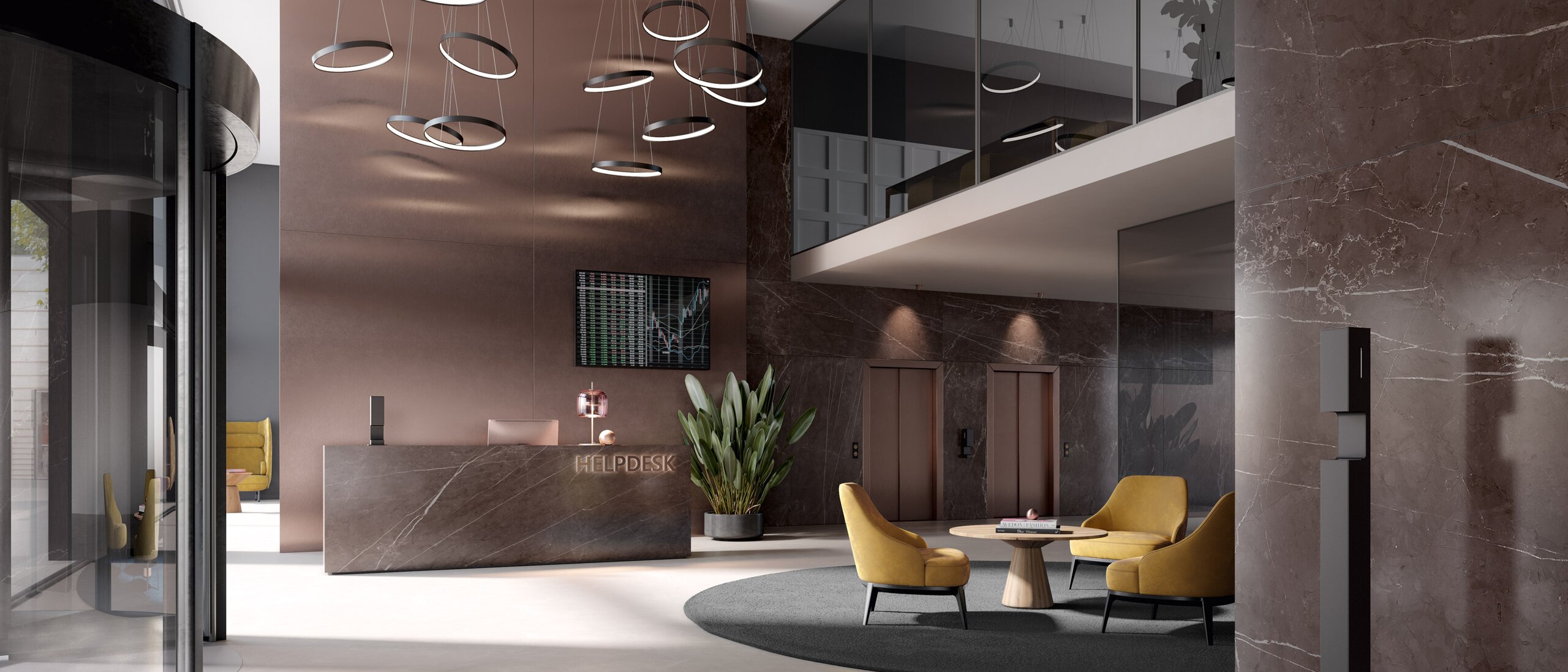 Aufgrund ihrer Mobilität und Höhe sollte die Desinfektionsspendersäule präsent am Eingang von Lobbys platziert werden. Hier sorgt sie für einen perfekten ersten Eindruck und ermöglicht eine schnelle Desinfektion.