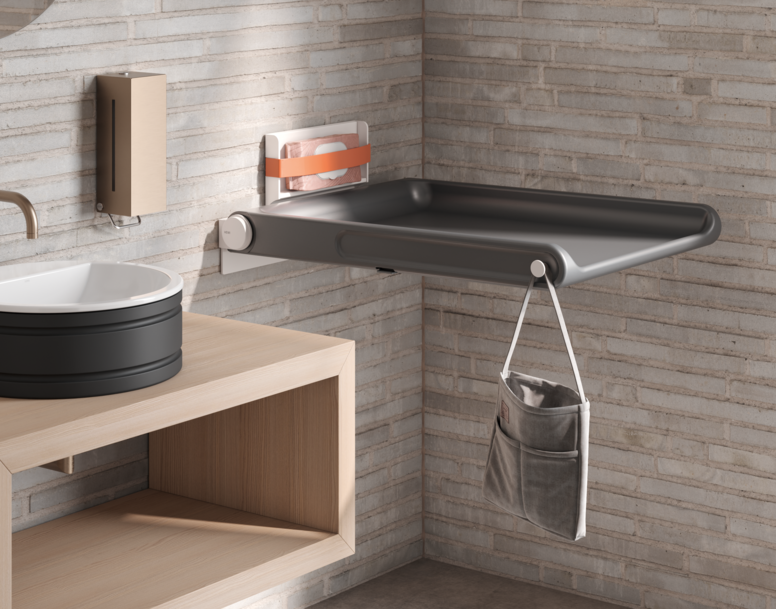 Der neue HEWI Babywickeltisch kombiniert eine leicht zu reinigende Liegefläche aus PUR-Schaum in Eisengrau mit robusten Metallkomponenten in Kornweiß matt. Das gebremste Absenken ermöglicht eine sanfte Handhabung, während seitliche Haken und ein Klemmfach zusätzlichen Komfort bieten. Der Wickeltisch vereint höchste Sicherheitsstandards und komfortable Handhabung mit modernem Design, das sich nahtlos in öffentliche Sanitärbereiche einfügt. Gestaltet wurde der Babywickeltisch von Holscher Design, einer renommierten und vielfach ausgezeichneten Agentur für strategisches Produktdesign aus Dänemark mit über 50 Jahren Erfahrung.