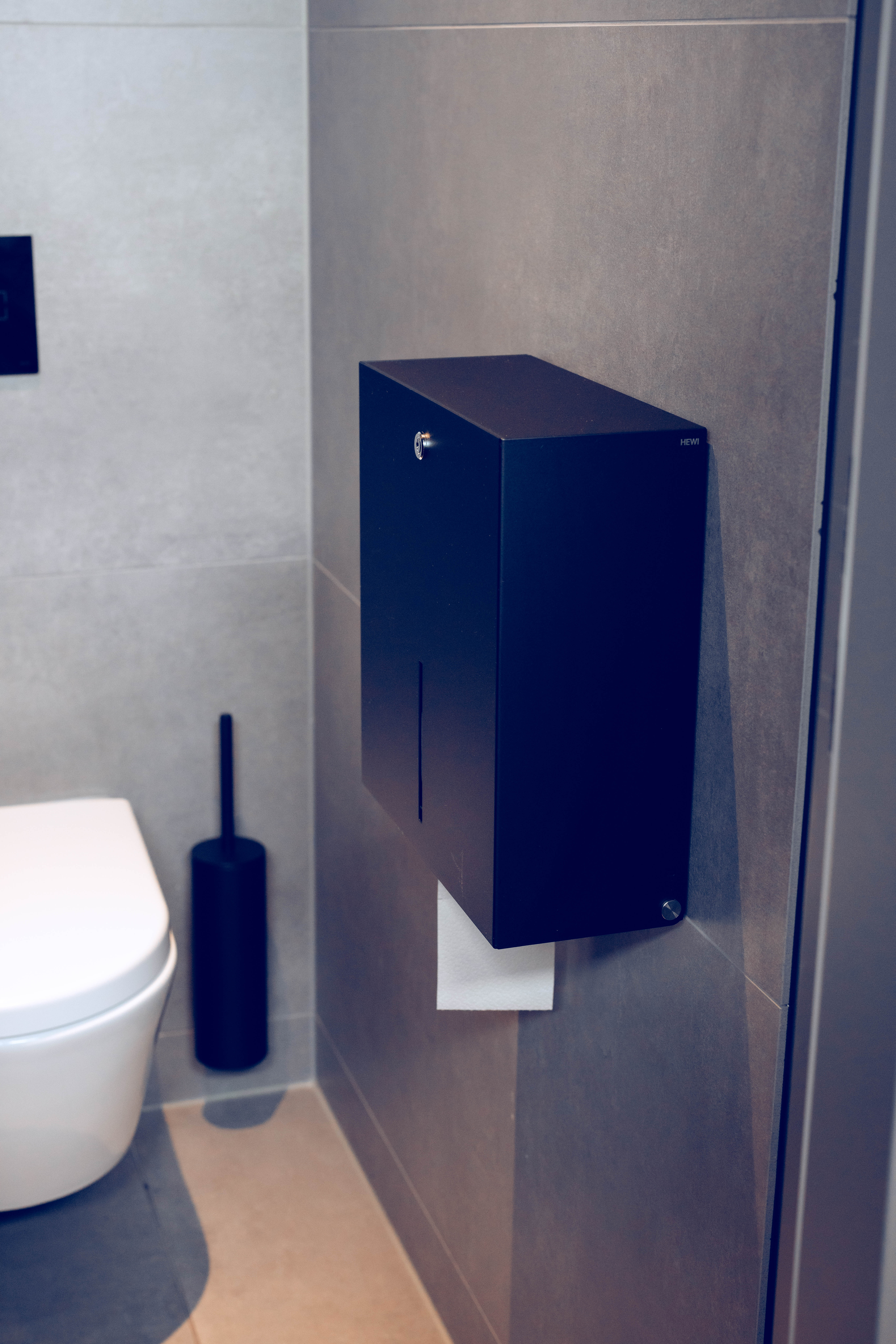 „Authentische, ehrliche Materialien und ein zeitloses, reduziertes Produktdesign gewinnen bei der Planung und Ausstattung des Badezimmers und darüber hinaus immer mehr an Bedeutung“, lautet die Überzeugung von Johanna Radies und Jens Götte, beide HEWI Produktmanager. Mit der Sortimentserweiterung in Schwarz matt schafft HEWI maximale Gestaltungsfreiheit und ermöglicht ausdrucksstarke Statements im Interior Design. Unterstrichen wird dies durch die natürlich anmutende und emotional ansprechende Haptik der Oberflächen.
