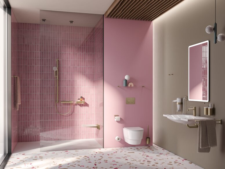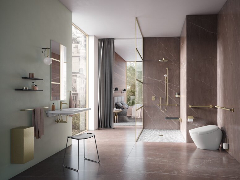 HEWI bietet neue Oberflächen im umweltschonenden PVD-Verfahren für höchste Individualität im Badezimmer.