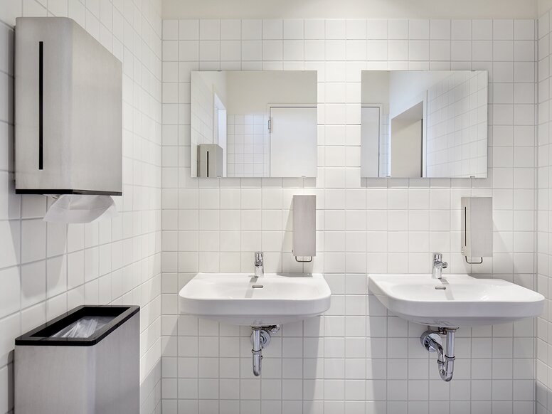Die bis ins Detail durchdachten HEWI Accessoires aus Edelstahl wirken besonders hochwertig. Gleichzeitig sind sie äußerst robust, hygienisch und pflegeleicht und damit prädestiniert für den stark frequentierten Hochschulbetrieb.