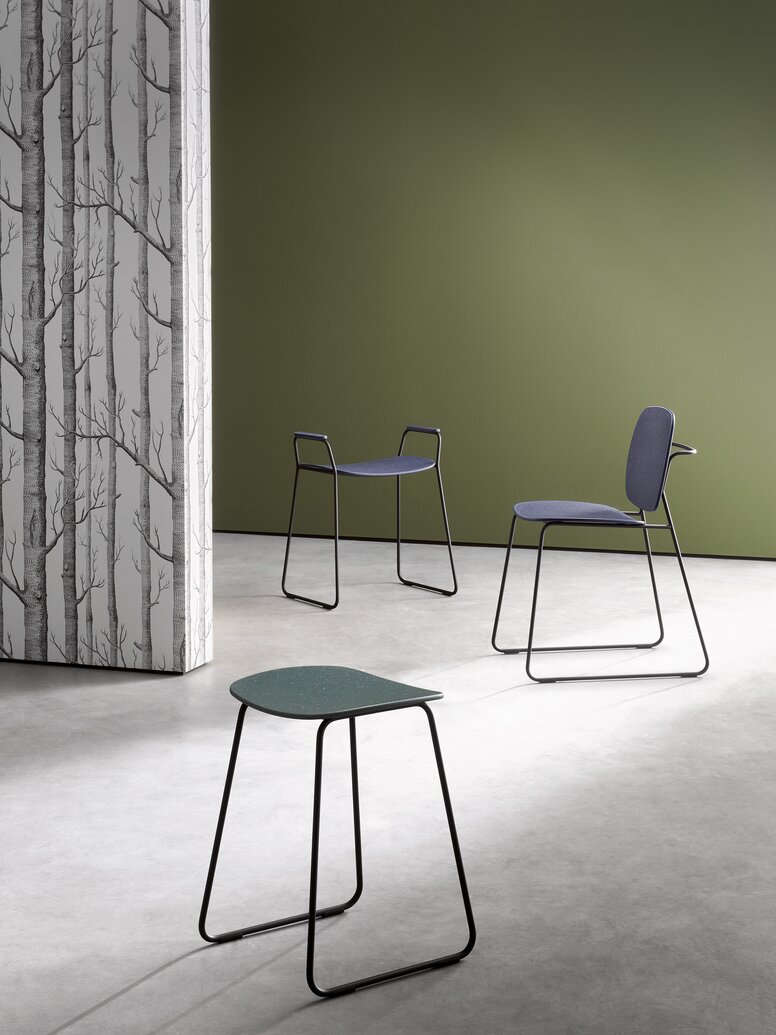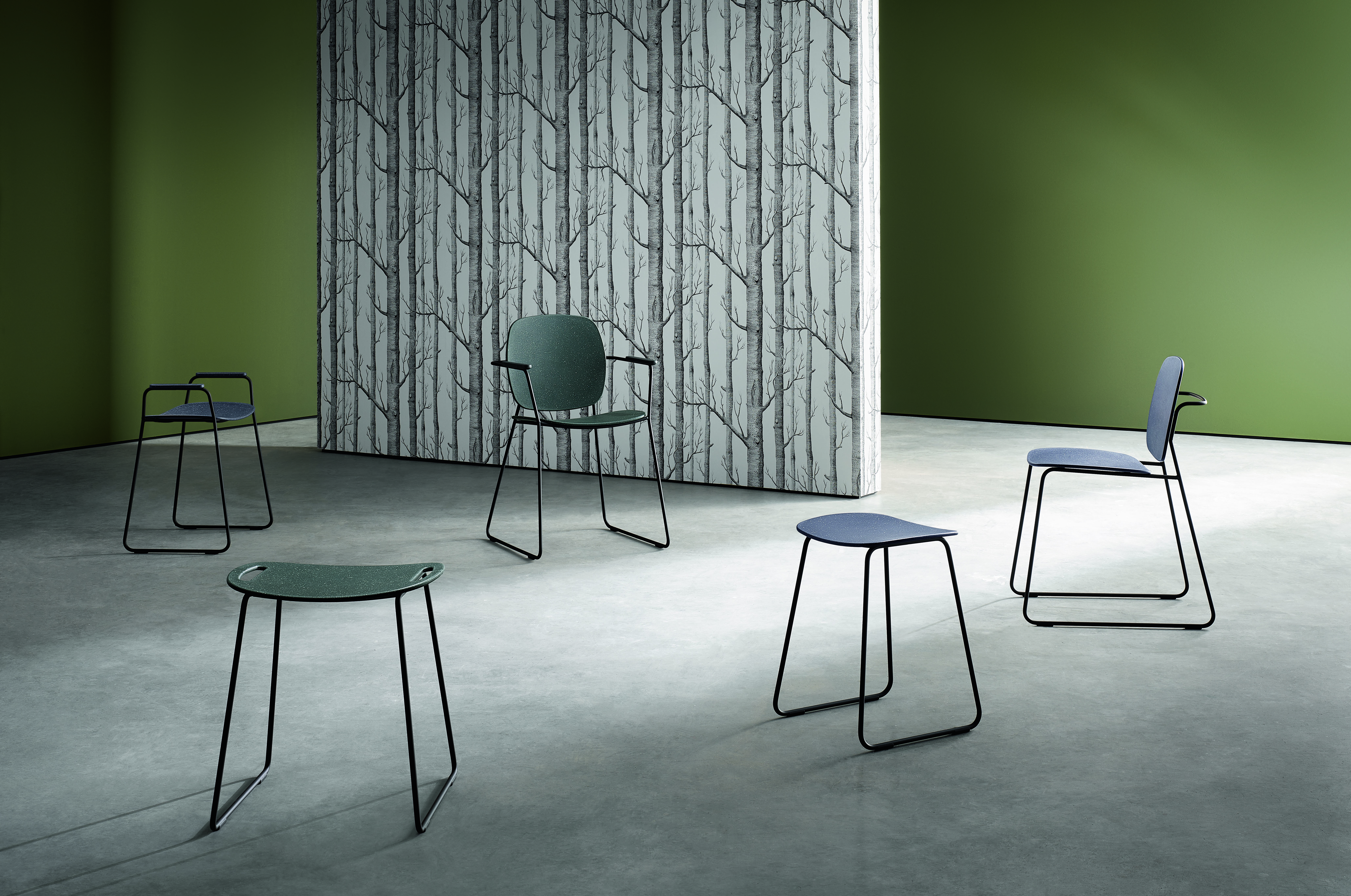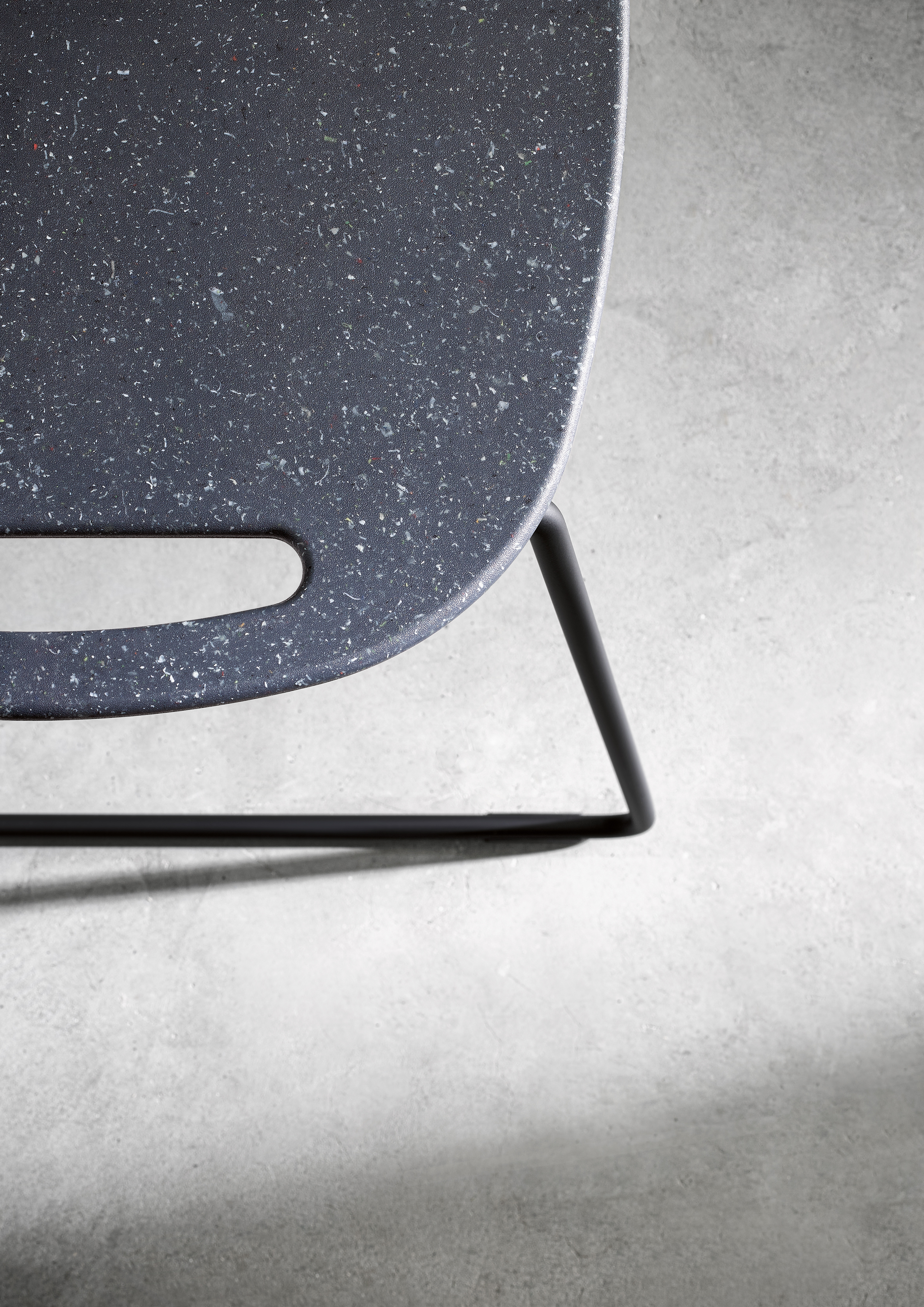 Design, Ästhetik und Kunststoffe aus anderem Kontext: Die von HEWI entwickelte Re-Sitzfamilie wird aus Post-Industrial Rezyklat (PIR) gefertigt und ist ein Statement für bestes Ecodesign.