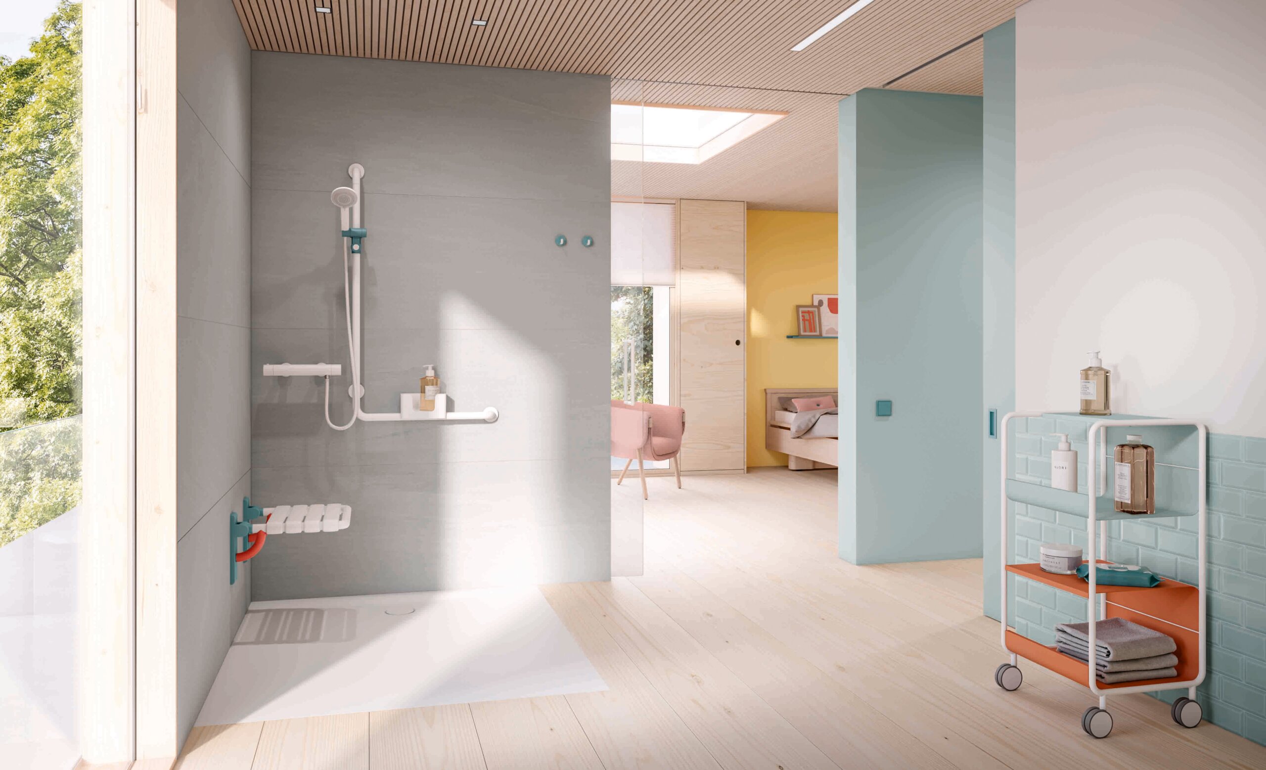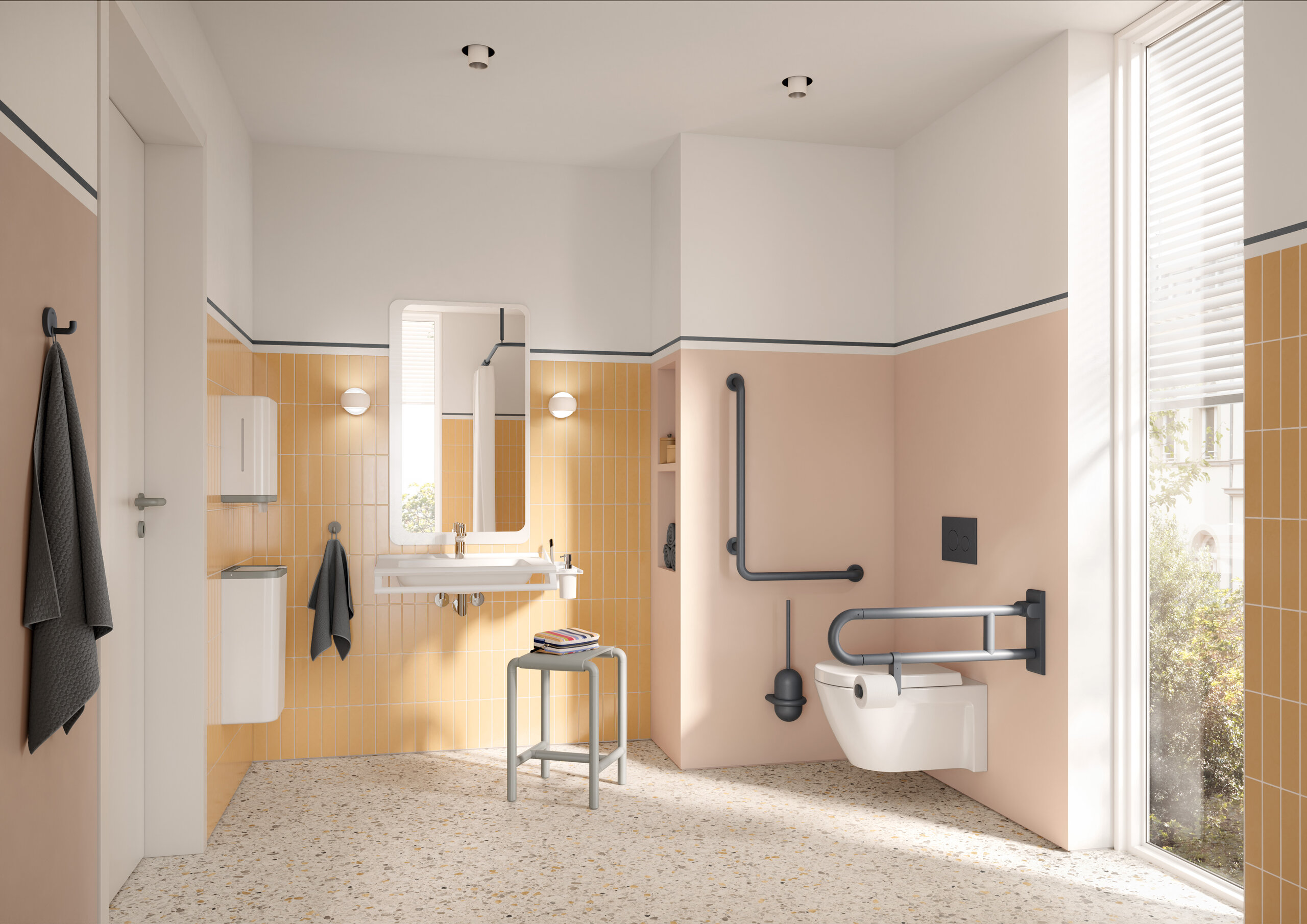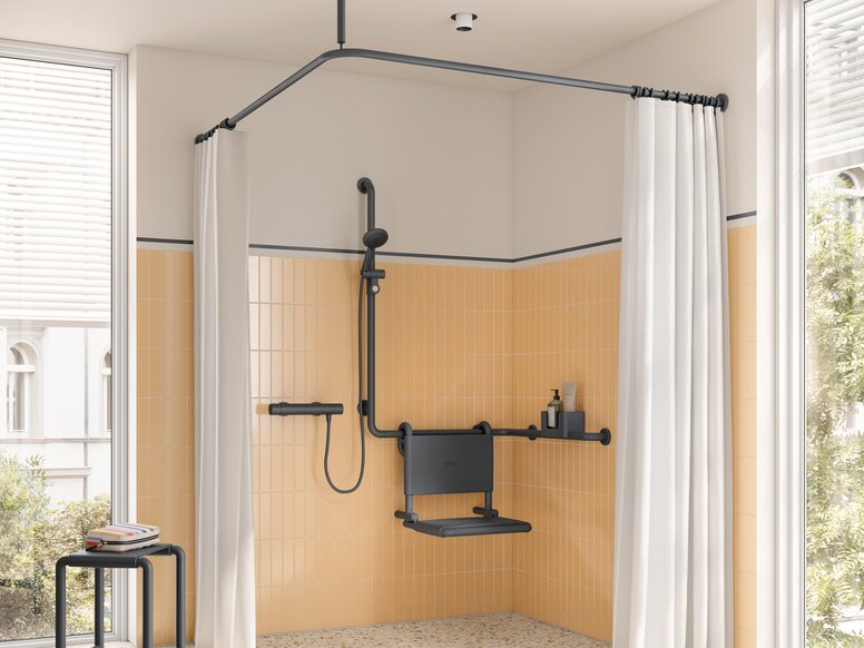 • Von Waschtisch über Accessoires bis hin zu Armaturen, Stützklappgriffen und -sitzen