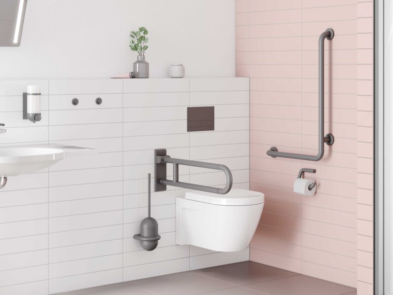 HEWI Stützklappgriffe sind in unterschiedlichen Längen erhältlich. Damit adressieren sie nicht nur die Bedürfnisse der Nutzenden, sondern erfüllen auch länderspezifische Anforderungen an barrierefreies Bauen.