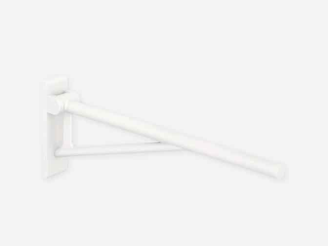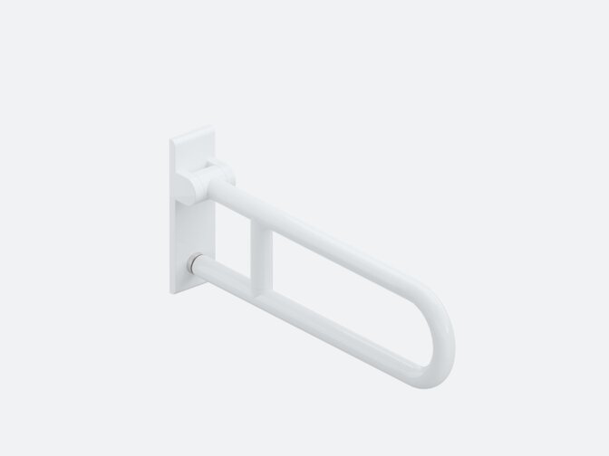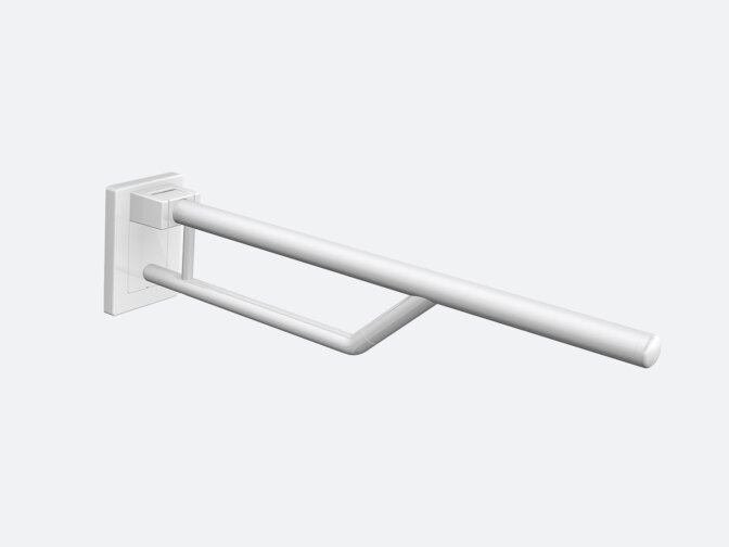 - Stützklappgriff Duo: Dieser verfügt zusätzlich über einen Unterholm in runder Ausführung, der das seitliche Eindrehen auf das WC optimal unterstützt