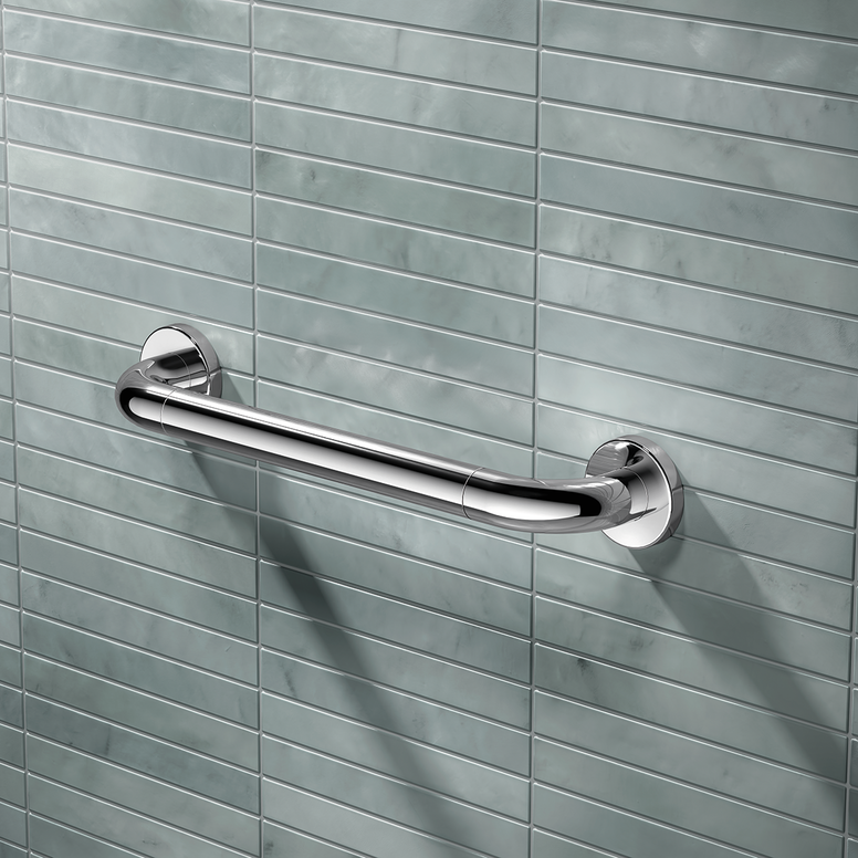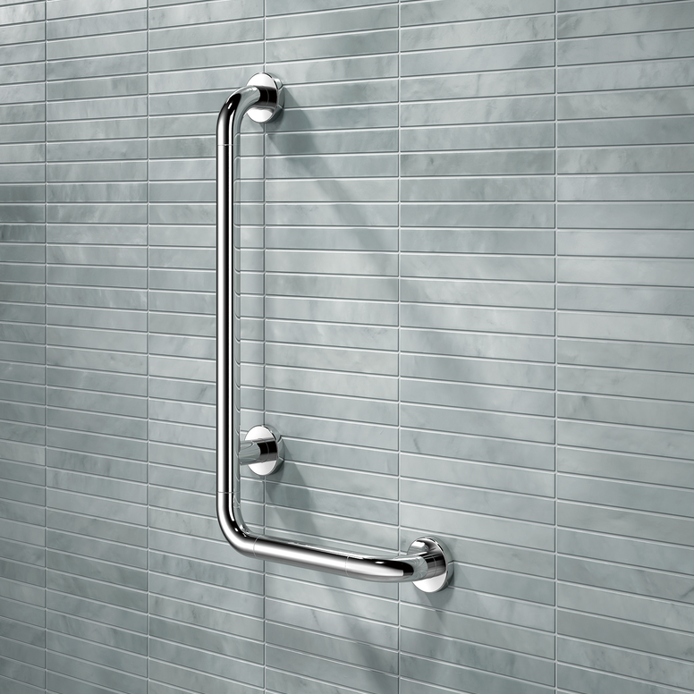 Sicheres Halten ist im Bad unerlässlich. Für die Sicherheit im Bad ist es hilfreich, ausreichend Stützklappgriffe und/oder Haltegriffe einzuplanen. Diese vereinfachen das Aufstehen und Hinsetzen. Noch dazu ermöglicht das Rundrohrdesign von WARM TOUCH ein symmetrisches Greifen. Nutzende empfinden die ergonomische Form und warme Haptik als angenehm – besonders bei Kälteempfindlichkeit.