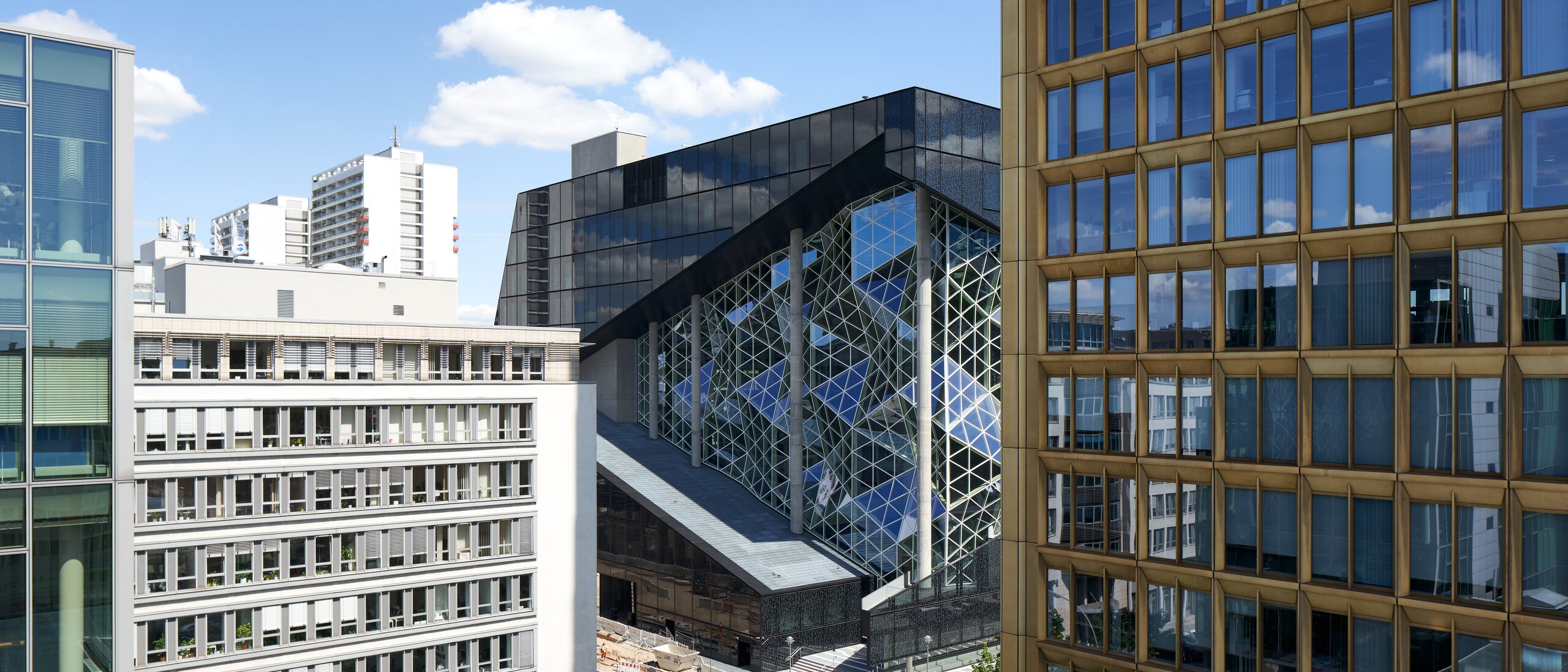Direkt entlang des Standorts gebaut, wo einst die Mauer Berlin in zwei Hälften teilte, steht das Gebäude nun als Symbol für die Antworten auf Herausforderungen im Jetzt und in der Zukunft – nicht nur für die digitale Arbeitswelt.