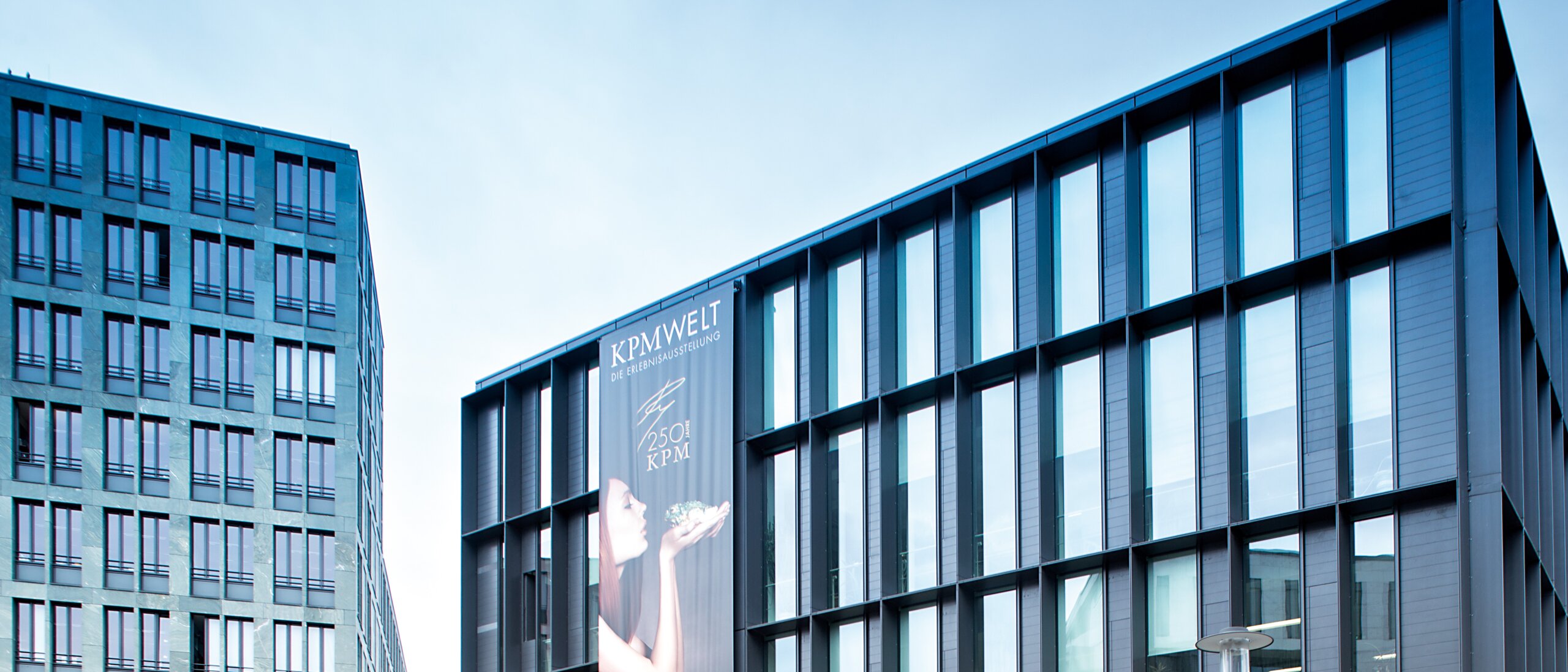 Sie war namensgebend für die neu entstandene Spreestadt, dem sogenannten KPM-Quatier. Zahlreiche Büro- und Wohngebäude haben sich rund um das KPM-Gelände angesiedelt. Die ursprüngliche Produktionsstätte wurde umfassend saniert und umgestaltet – so wird die ehemalige Ringoffenhalle mittlerweile als Verkaufs- und Ausstellungsgebäude genutzt. Mit jedem Standortwechsel entsteht für den Betrachter ein neues Bild des Gebäudes – die Geschosse wirken wie lose übereinander gestapelte Quader, die sich zum Teil über die Fassadenebene hinausschieben und in sich gedreht sind.