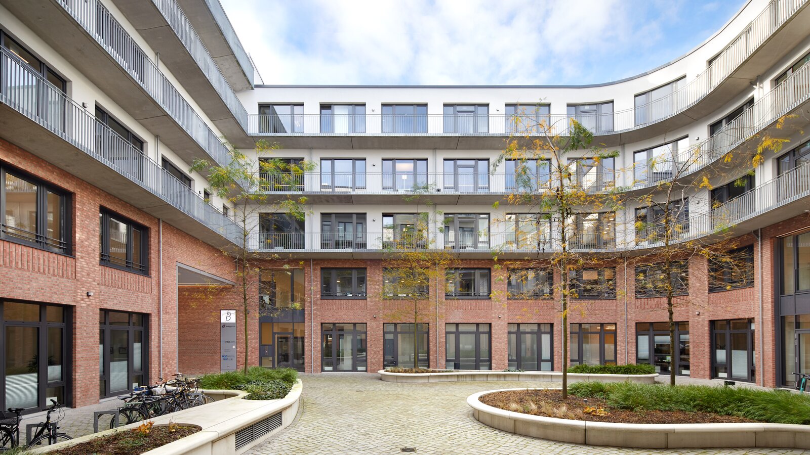 Die rotbraune Klinkerfassade an der Straßenseite sowie die regelmäßige Anordnung der Fenster mit einer zurückgesetzten Brüstung, die durch ein spezielles Klinkerschmuckelement betont wird, sind Remineszenzen an die klassische Industriearchitektur im einstigen Industrieviertel Ottensen.
