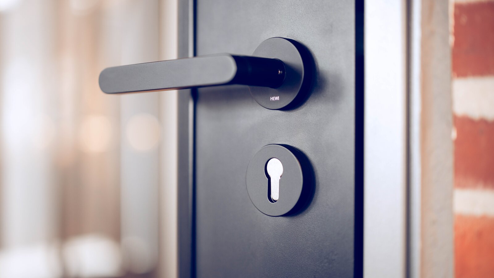 Unterstützt wird die durchgängige Innenraumgestaltung durch die eingesetzten HEWI Lösungen. Für die Türbeschläge wählten die DSK-BIG und AX5 Architekten die Serie 270 in Schwarz matt – eine elegante Stilikone, entworfen vom Architekten und Gestalter Hadi Teherani. Die Serie transportiert mit ihrem minimalistischen Produktdesign eine ganz besondere Ästhetik. Mehrfach mit Designpreisen ausgezeichnet, betont bei der Serie 270 die stark verkleinerte Rosette die klare Geometrie des ergonomischen Türdrückers und setzt ihn völlig neu in Szene.