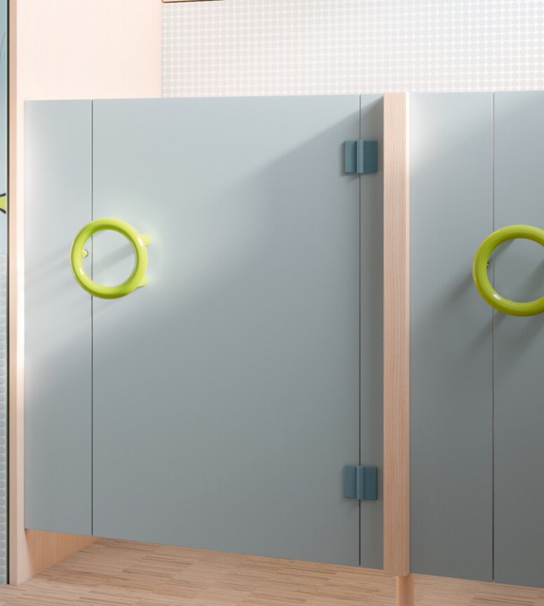 Safety is a key concern in nurseries, especially in high-traffic areas such as the sanitary facilities. WC partitions in nurseries must therefore fulfil strict safety standards. This includes the partitions having rounded corners and edges to minimise the risk of injury. Robustness and stability are also essential to withstand the daily stresses while protecting the children.