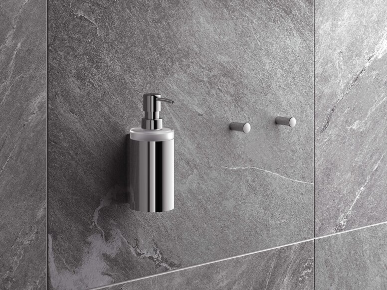 Hooks allow washing utensils and clothes to be hung up at arms reach to the shower. They are especially practical in small bathrooms, where bulky towel holders would take up too much room. HEWI hooks are available in single or double variants. The chrome look gives the hooks a particularly elegant appearance.