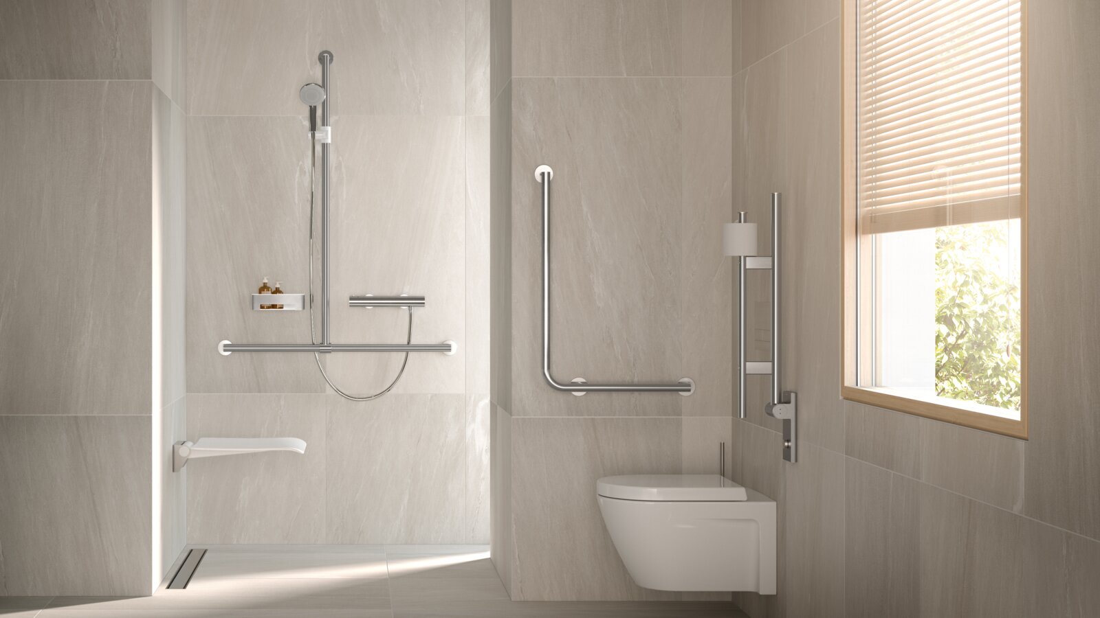 Ablagen, Steckdosen und Armatur müssen sich im unmittelbaren Greifbereich des Nutzers befinden. Seifenspender, Abfallbehälter, Handtrockner müssen im Bereich des Waschtisches angeordnet sein und sich visuell kontrastierend von ihrer Umgebung abheben